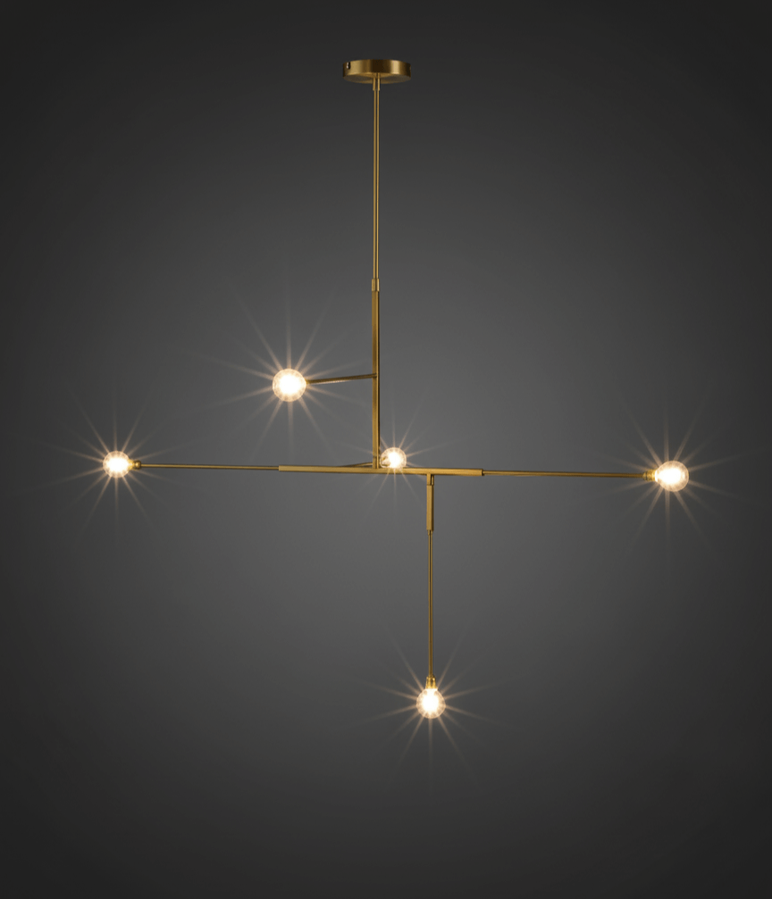 - ظرافت بینهایت (Infinity Finesse): ساختار بسیار باریک و خطی این لوستر، آن را شبیه به یک طراحی معلق در هوا کرده است. رنگ مشکی و طلایی مات بدنه، کنتراست زیبایی با نور گرم ایجاد کرده و به طور همزمان، خود به عنصری دکوراتیو و چشمنواز تبدیل میشود.