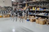 - شیشه پیرکس دمیدهشده و رنگآمیزی شده با دست: حبابهای پیرکسی مشکی و شفاف، همچون قطعات یخ یا جوهر رها شده در آب، یکییکی توسط استادکاران دمیده و سپس با ظرافت رنگآمیزی دستی شدهاند. تضاد رنگ سیاه عمیق و شیشه شفاف در این فرم تقریبا دایرهای، درخششی خیرهکننده و لایهای از عمق به مرکز فضای شما اضافه میکند.
