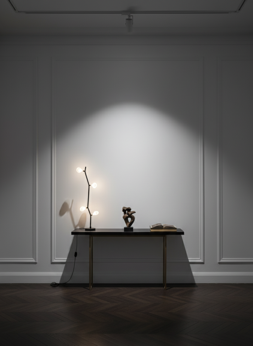 - جلوه: قرارگیری آباژور شاخه (به خصوص تیپ 30 سانتیمتری) بر روی یک کنسول ورودی ساده و مدرن، اولین نقطه کانونی خانه را تشکیل میدهد.
