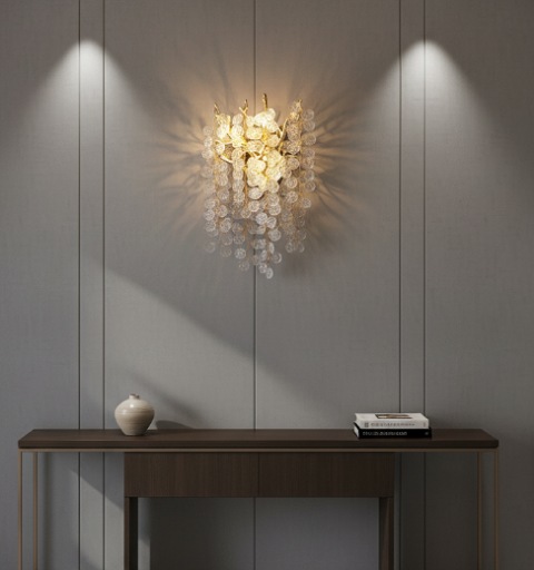 لوستر دیواری مدل درختی با کریستال سکه‌ای