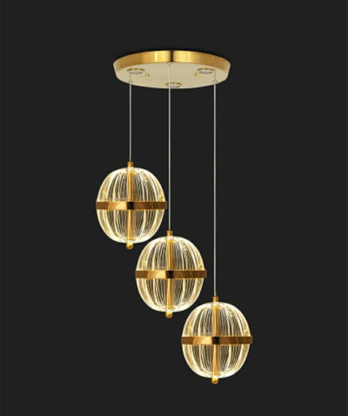 این آویز کریستالی سه شعله با بدنه طلایی، ترکیبی چشمنواز از ظرافت و تجمل مدرن است. طراحی کروی و استفاده از کریستالهای برشخورده، نور را به شکلی خیرهکننده منعکس میکند و فضای شما را درخشان و مجلل میسازد. این محصول یک انتخاب بینظیر برای افرادی است که به دنبال یک نقطه کانونی شیک و لوکس در دکوراسیون خود هستند.