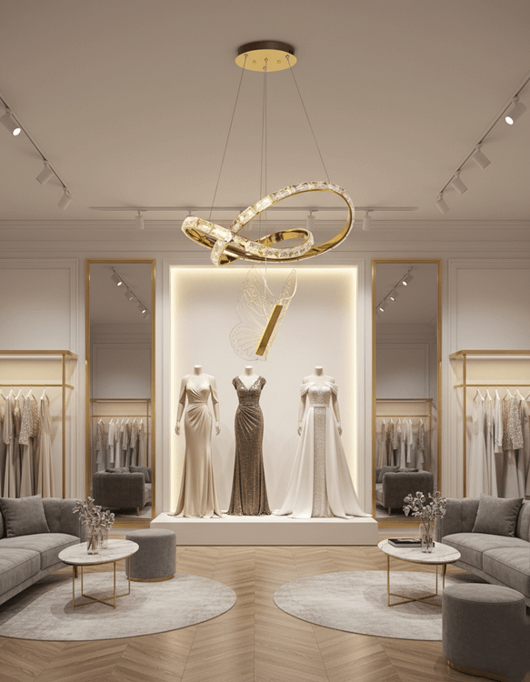 این لوستر آویز کریستالی با طراحی پروانه و فرمهای حلقوی پویا، نه تنها یک منبع روشنایی، بلکه یک اثر هنری دکوراتیو شاخص است. ترکیب رنگ طلایی براق با کریستالهای درخشان، جلوهای از لوکسگرایی (Glam) مدرن را به فضا میبخشد.