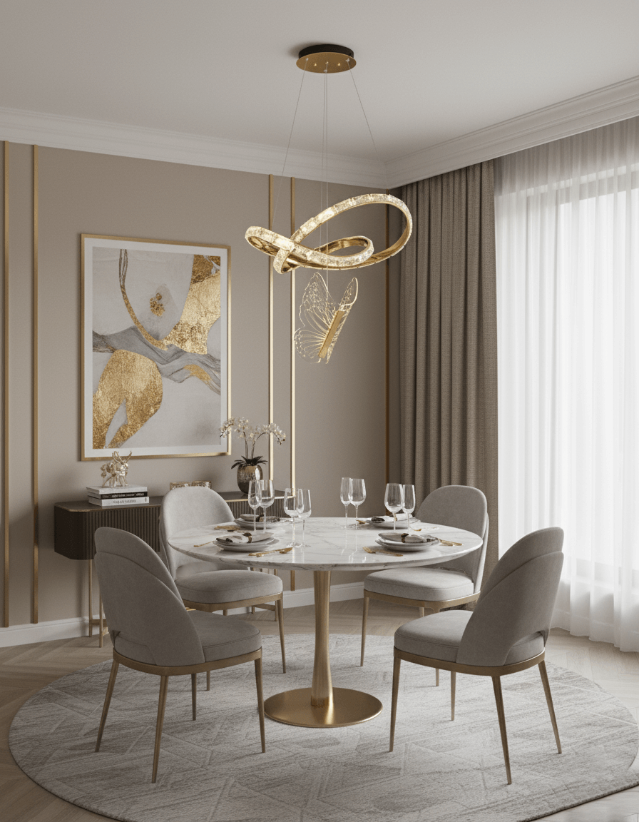 برای دستیابی به یک دکوراسیون یکپارچه و مجلل با محوریت این آویز، از عناصر زیر استفاده کنید: