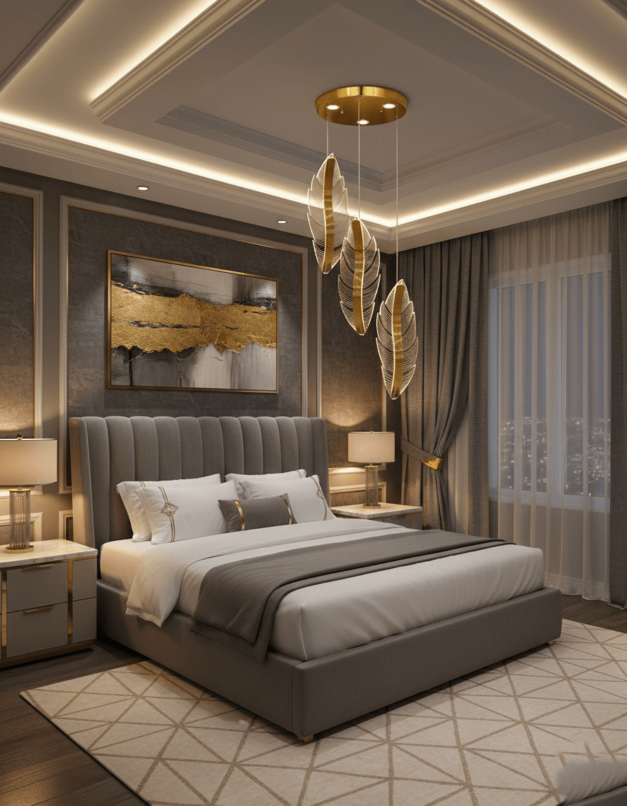 ​لوستر مدرن طرح پر طلایی 3 شعله با آویزهای کریستالی شفاف و بدنه فلزی.