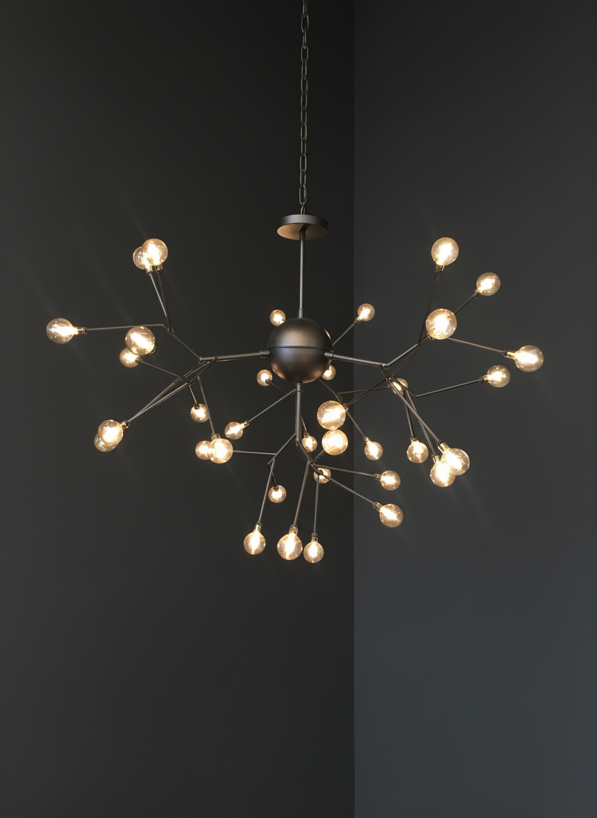 بدنه این لوستر از متریال مرغوب و مقاوم ساخته شده و با بهترین رنگ کورهای پوشیده شده است که دوام و پایداری آن را در برابر رطوبت و تغییر رنگ تضمین میکند. اتصالات شاخهای با دقت مهندسی بالا طراحی شدهاند تا علاوه بر زیبایی بصری، از استحکام کافی برای نگهداری حبابهای متعدد برخوردار باشند.